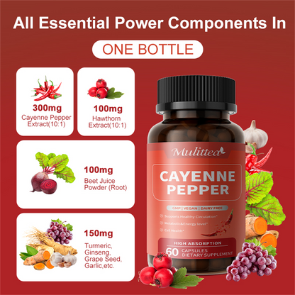 - ✔️ Enhanced circulation with 500mg Cayenne Pepper Extract