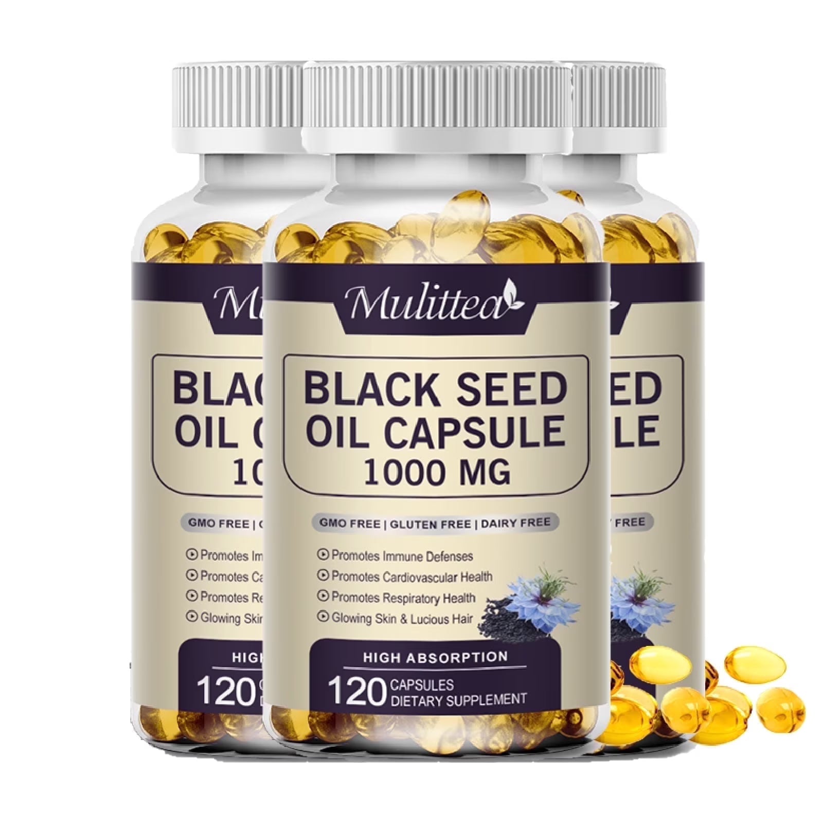(3 Pack)Black Seed Oil Supplement, Cold Pressed Black Cumin Seed Oil, 120 Capsules