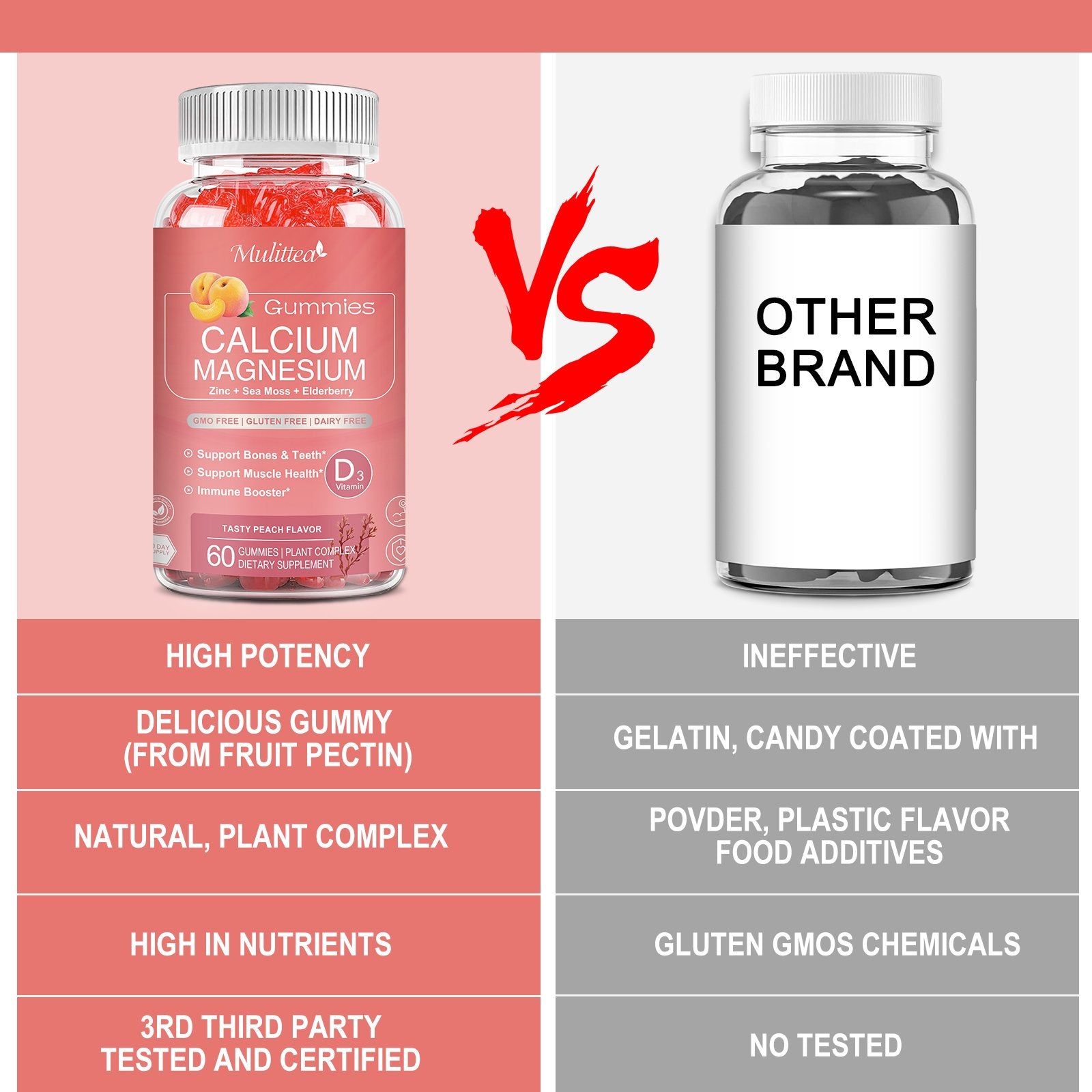 No more swallowing large pills! Delicious Peach Flavor gummies with potassium, magnesium glycinate, Vitamin D3 & natural vitamins. No aftertaste & easy absorption. -