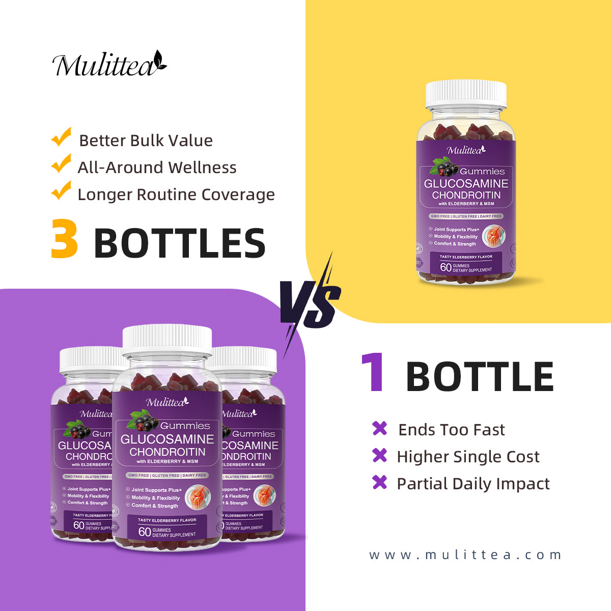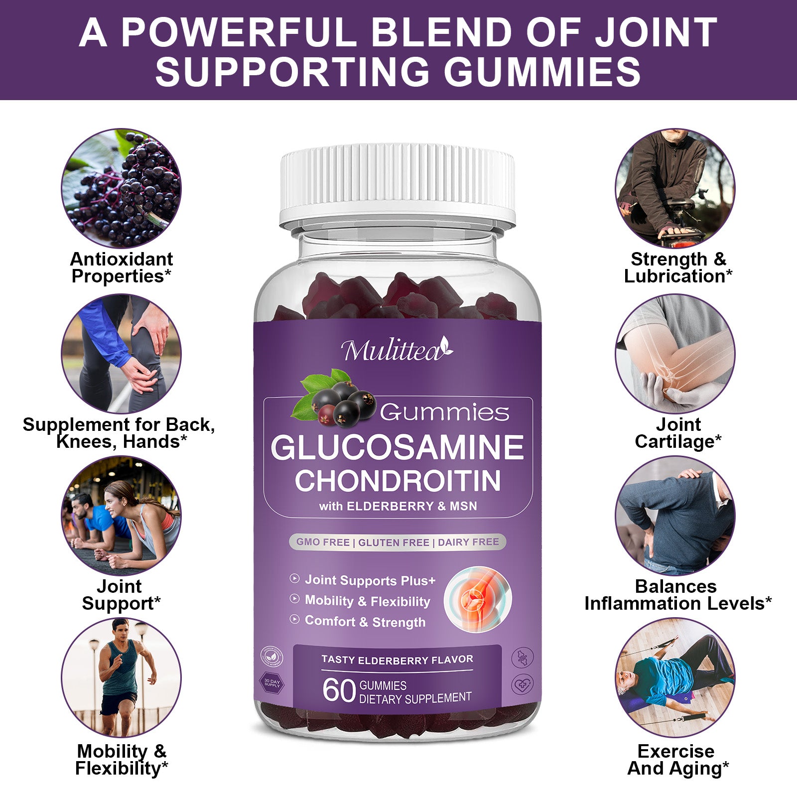 MULITTEA Unlike other Glucosamine Chondroitin supplements, gummies or even syrups, our natural powerful formula combines the joint support benefits of 5 high-quality ingredients and a powerful antioxidants to increase the effectiveness and support an active lifestyle!