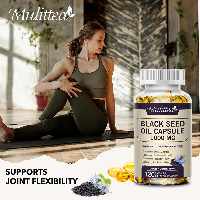 Unlock ancient wellness with Mulittea Black Seed Oil Capsules — a premium source of cold-pressed Nigella Sativa (Black Cumin Seed) rich in naturally occurring Thymoquinone (3%), Omega 3-6-9, and powerful antioxidants.