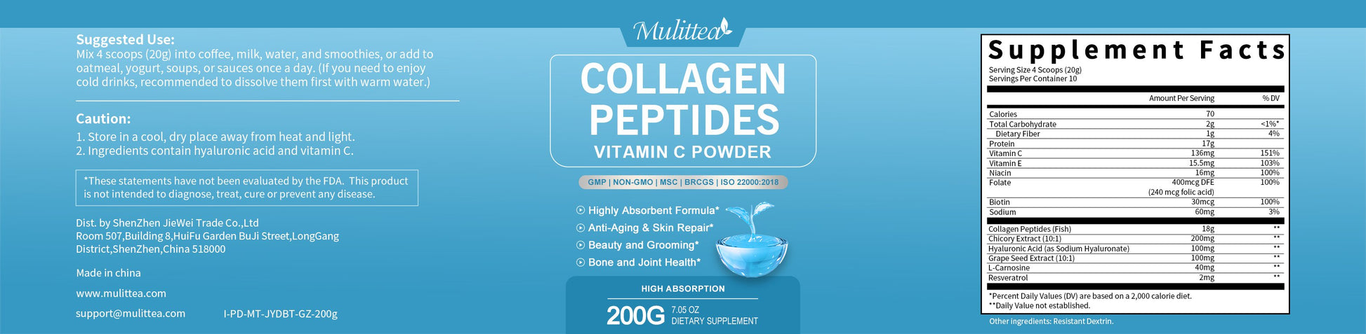 Mulittea Collagen Peptides Vitamin C Chicory Extract Powder Dietary Supplement