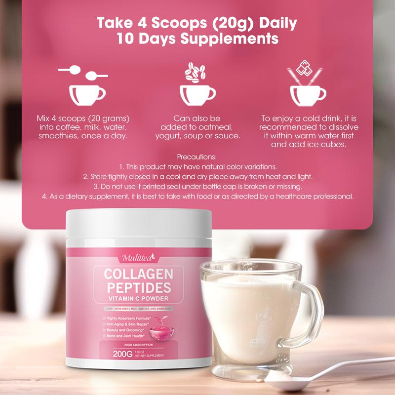 Mulittea Collagen Peptides Vitamin C Powder Dietary Supplement