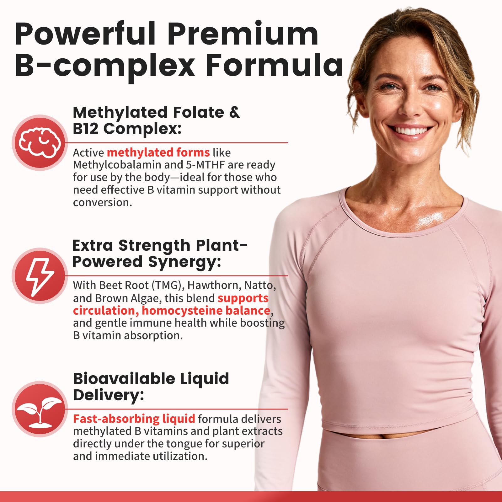 This extra-strength methylated B complex provides bioactive B vitamins your body can use instantly for energy, focus, and heart support — all in a clean, sugar-free liquid form.