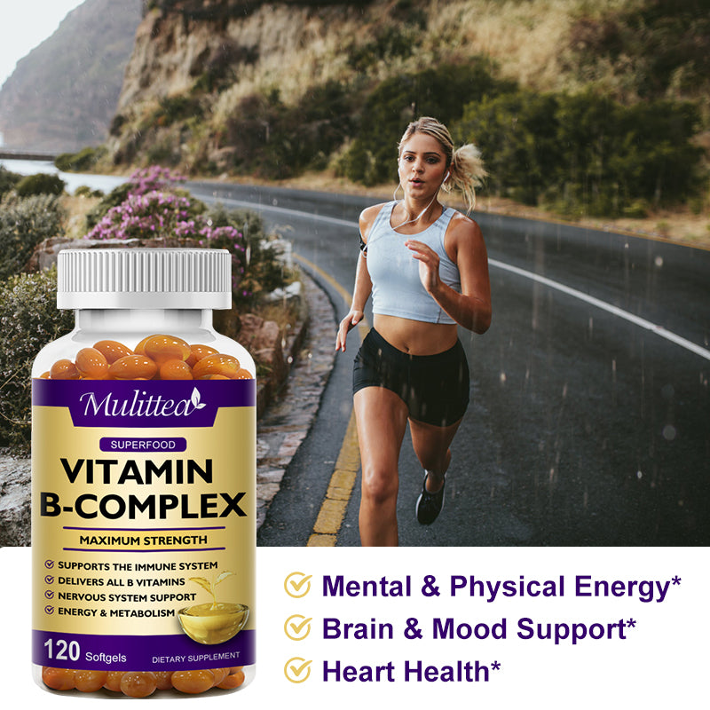 Vitamin B Complex Capsule (B12, B1, B2, B3, B5, B6, B7, B9, Folic Acid & Biotin) ,Reduce Stress & Supports Better Moods ,Assists Nervous System Health & Energy